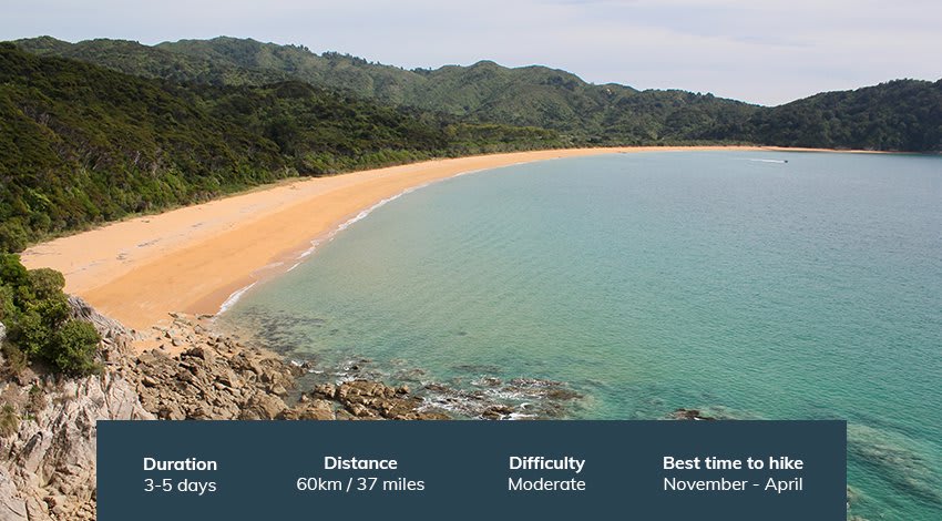 The Abel Tasman Coast Track is a 51 kilometre (32 miles), easy to moderate walking track that passes through a picturesque landscape of coastal forests and golden sandy beaches. All streams are bridged and most people can walk it in three to five days with plenty of time to explore.