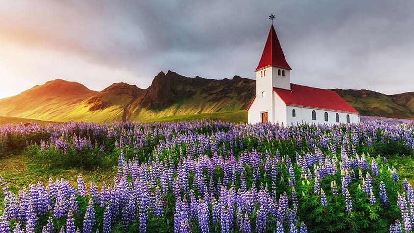 If you’ve traveled to New Zealand in the spring/summer you’re probably familiar with the wildflower lupin. It’s a beautiful purple-blossoming plant – and Iceland is covered with them! You may have seen the striking photos of quaint churches on hillsides surrounded by purple lupins – and they’re a great reason to make summer the season to see Iceland, particularly if you’re an aspiring photographer.