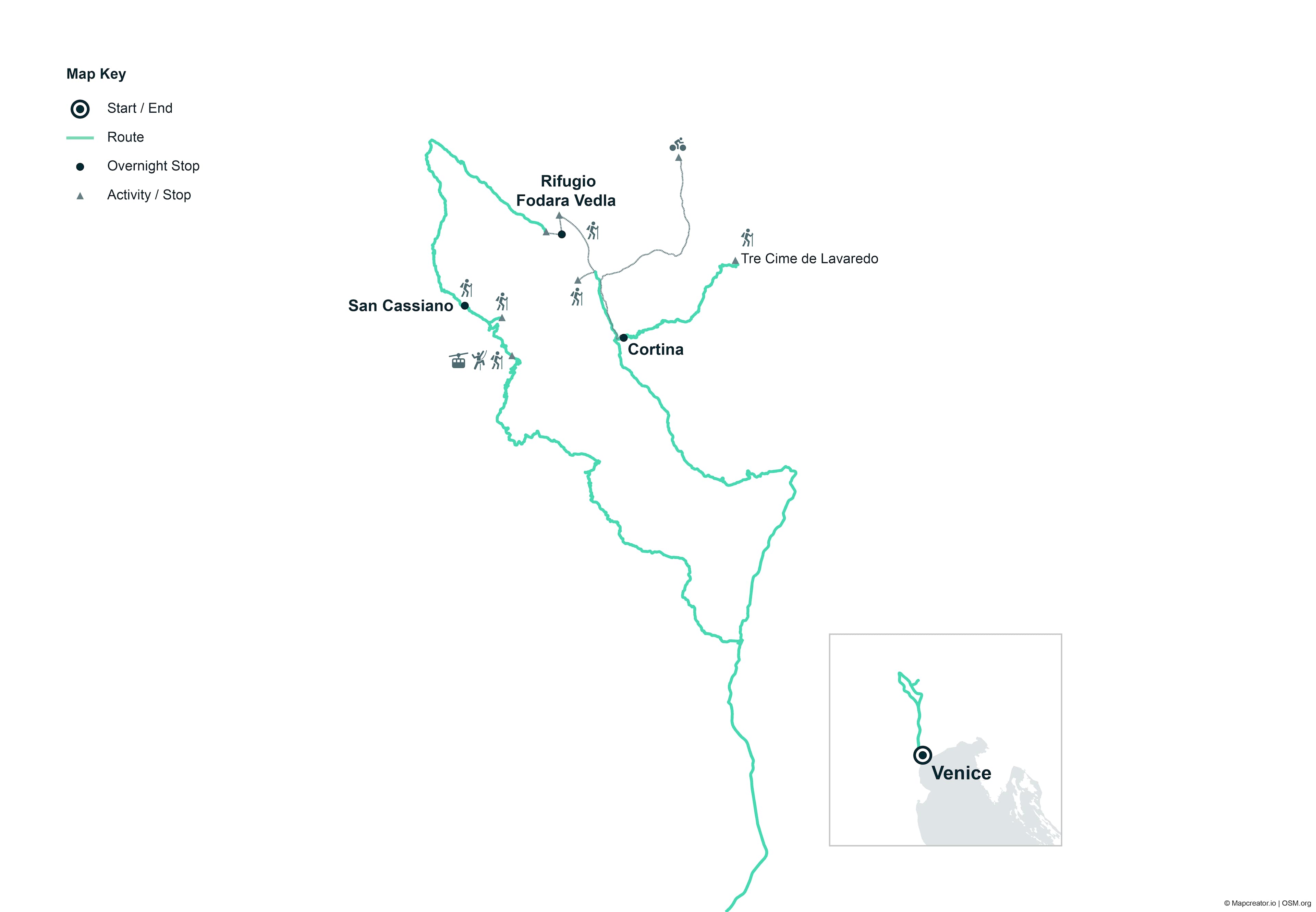 Today is the last day of your trip in the Dolomites. You’ll go home knowing you’ve hiked, biked, explored by via ferrata, and immersed yourself in one of the most spectacularly beautiful regions on the planet. We’ll head back to Venice this morning in time for flights leaving in the afternoon.