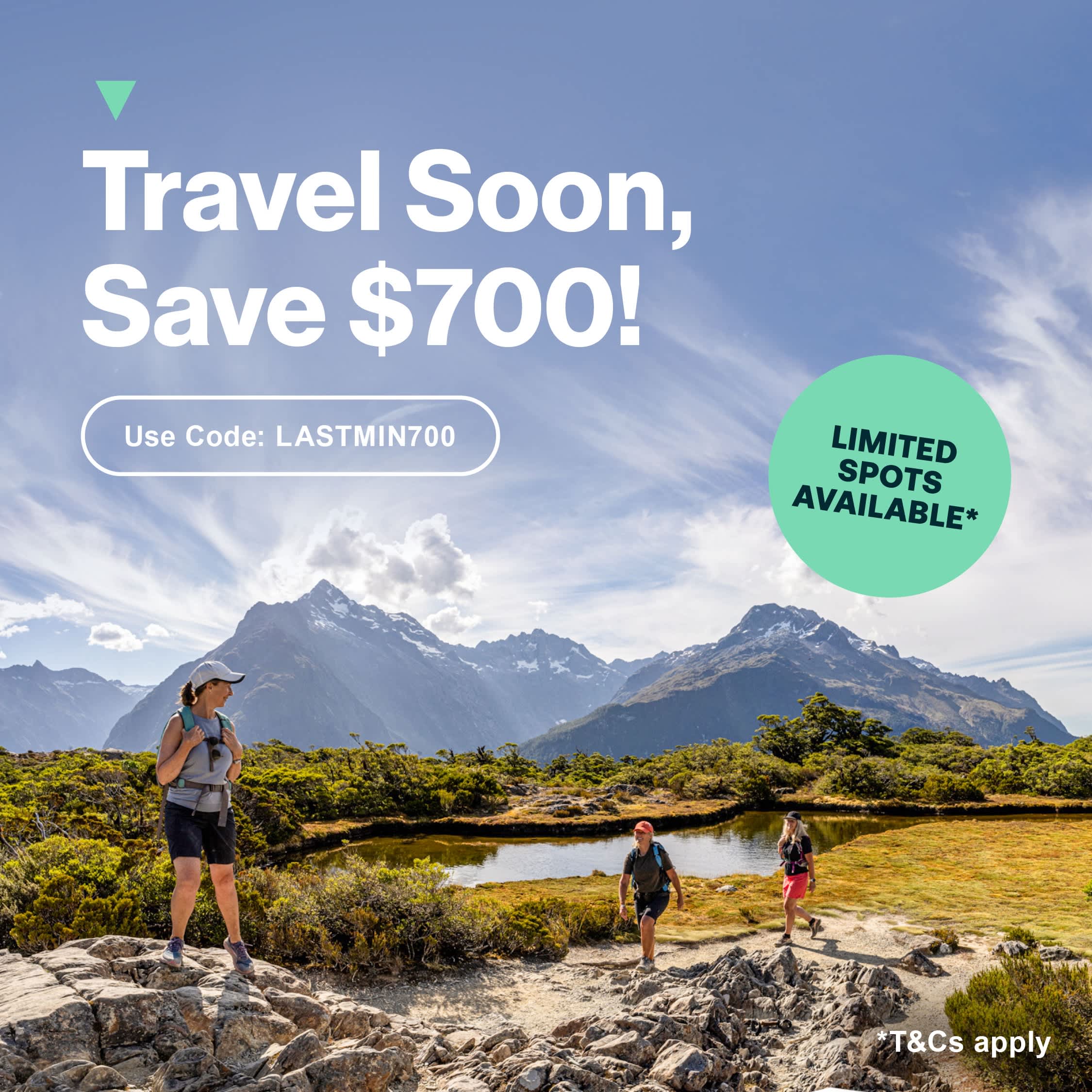 Right now, you can save $700 (AUD/NZD) on last-minute departures on any trip, including adventures in New Zealand, Patagonia, Iceland, Italy, France, and Peru.